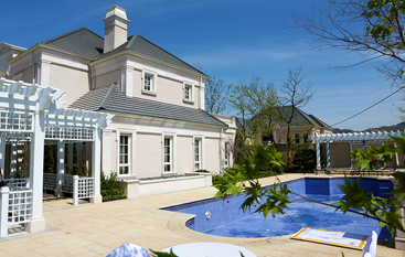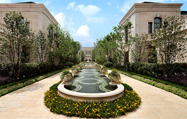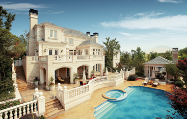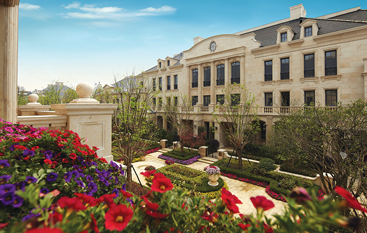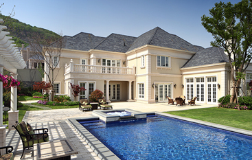 法式建筑外形丰富而独特,建筑形体厚重雄伟,多采用对称造型,善于在细节雕琢上下工夫。法式建筑屋顶多采用四坡屋顶并开有精致的老虎窗,外立面运用了法式廊柱、雕花、凹凸有致的线条,颜色稳重大气。